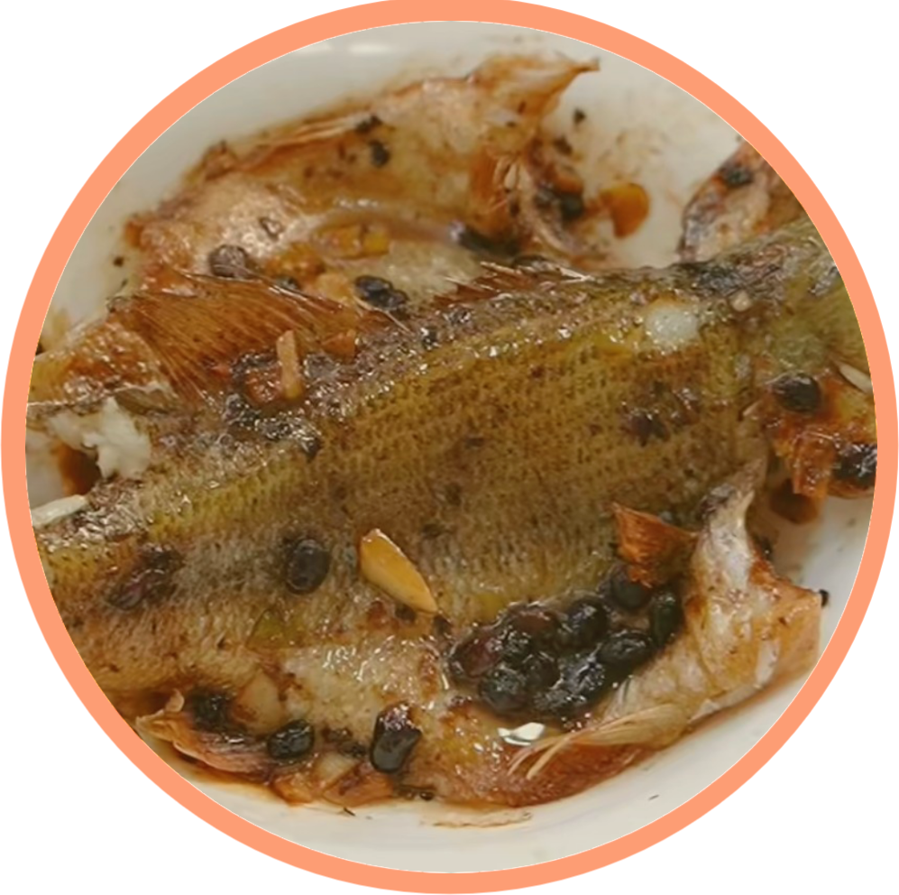 2. 鱼身上抹一层豆豉酱,把姜丝铺在鱼身上,再淋少许生抽。