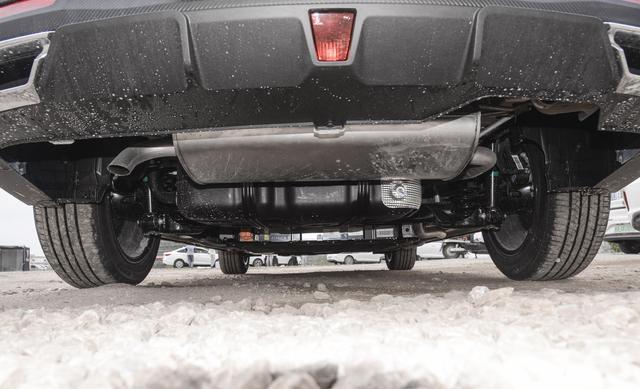 底盘方面,采用前麦弗逊 + 后多连杆独立悬架组合,调校偏向舒适。日常铺装路面行驶时,悬挂对细碎颠簸过滤得比较充分,但通过减速带或大坑洼时,后悬会有轻微弹跳感,要适当减速。转向系统有标准和运动两种模式,低速时转向手感轻盈(方向盘回转圈数2.8圈),高速行驶时转向阻尼增益线性,但车头指向性稍模糊。制动系统是前通风盘 + 后实心盘配置,初段制动力释放偏软,中后段逐渐增强,能量回收和机械制动衔接自然。底盘离地间隙150mm,能应对普通马路牙子,但电池包底部没配备金属护板(最好后期加装)。弯道侧倾控制一般,快速变道时车身姿态恢复速度适中,符合家用定位。
