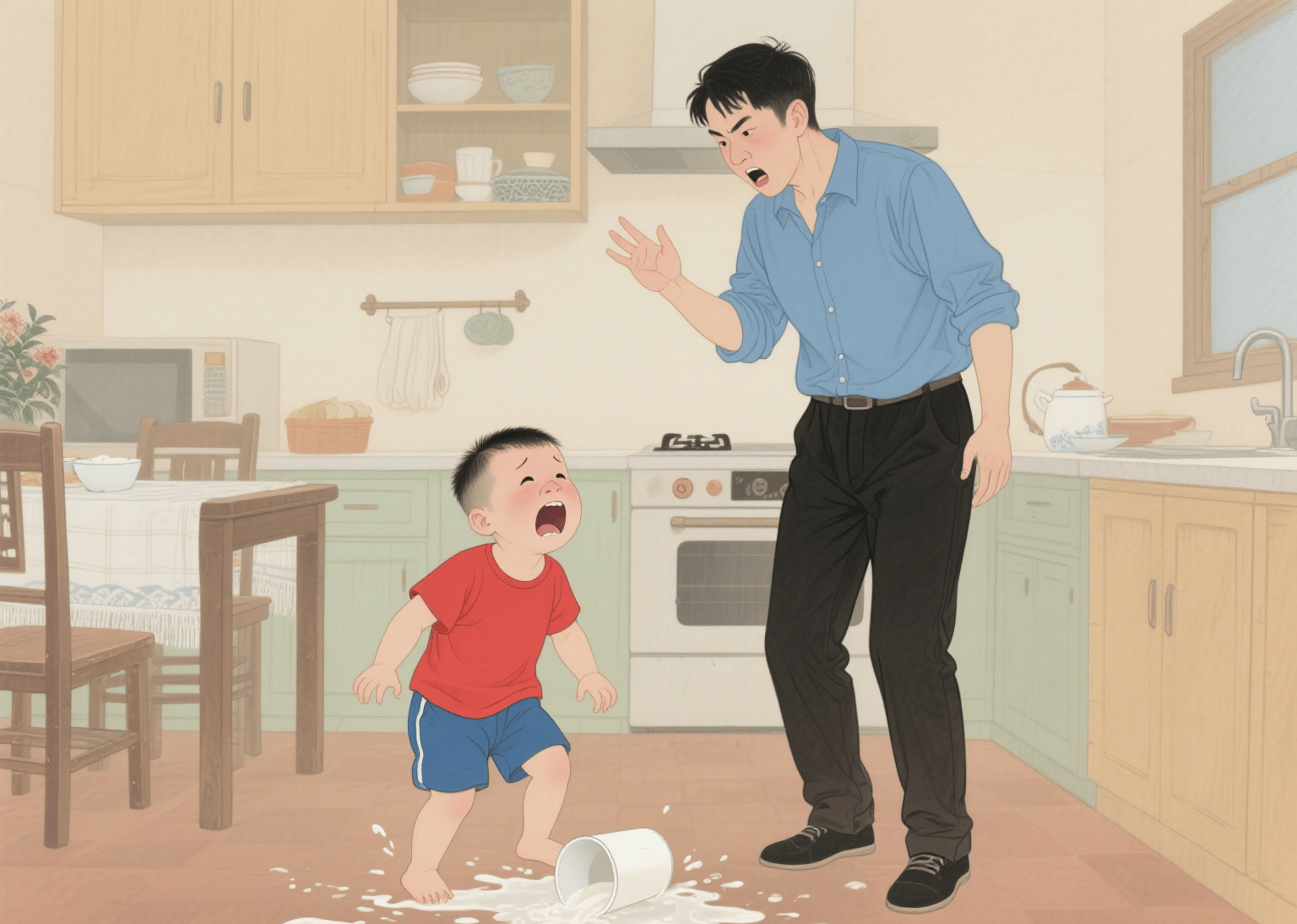 战场模式反应: “哭什么哭!说了多少次小心点!笨手笨脚!” → 孩子更恐惧、委屈、对抗。