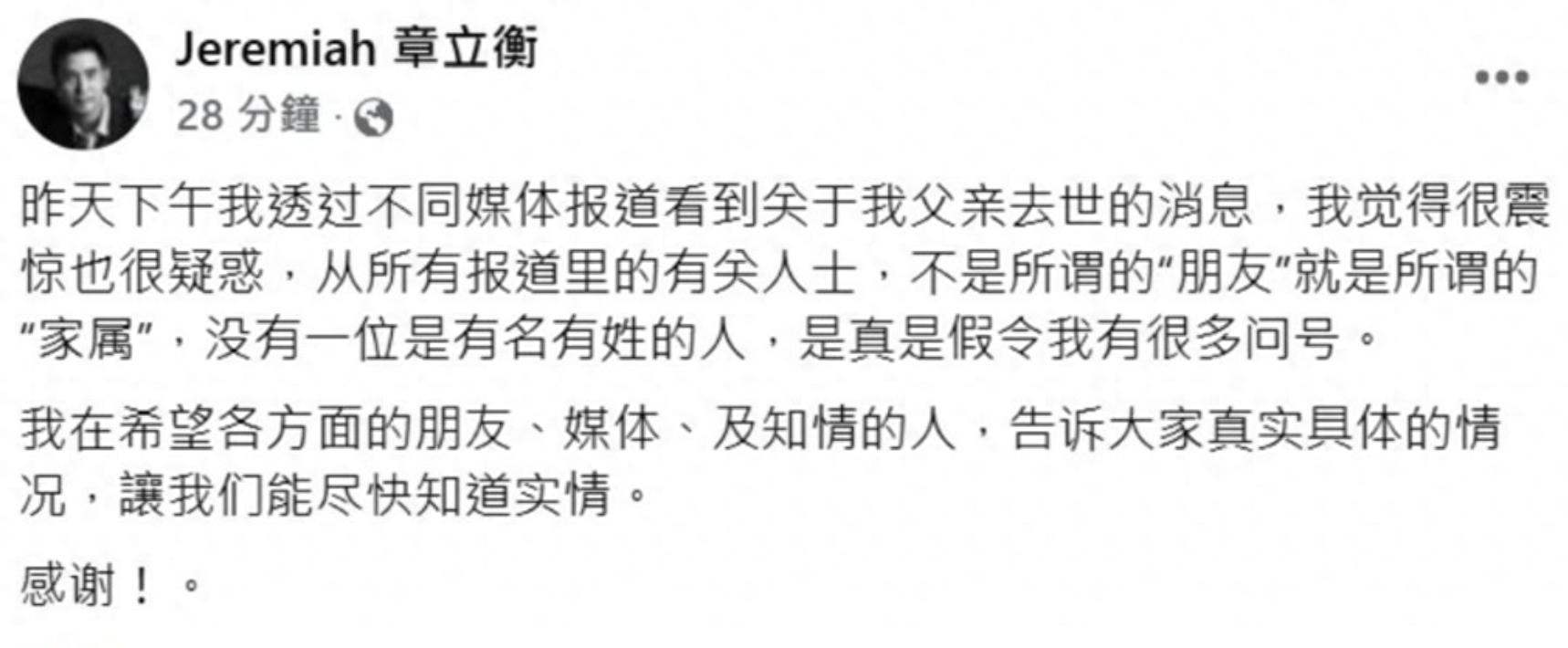 刘家昌去世的消息传来后的第二天,他的小儿子章立衡公开发声。他对从媒体上得知的消息感到既震惊又困惑。章立衡与刘家昌在日常生活中几乎没有交集。这主要是因为他们之间的父子关系极其糟糕,糟糕到几乎像是已经断绝了关系。