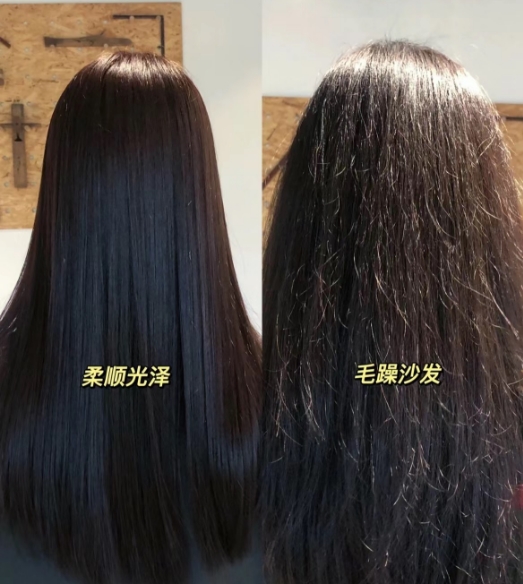发质类型:受损发质,因长期烫染而导致头发干枯、分叉,缺乏光泽。