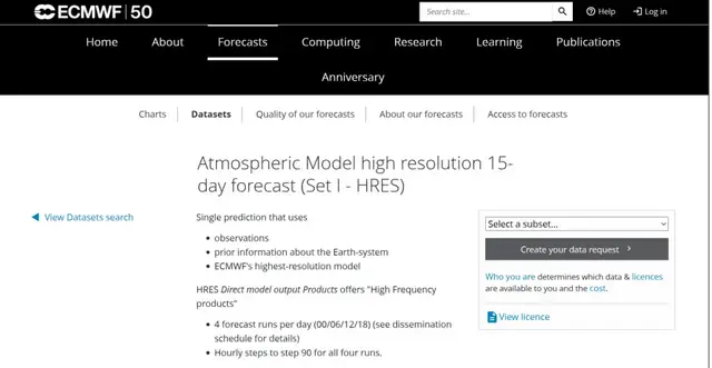 10月1日,欧洲中期天气预报中心(ECMWF)正式向全球用户开放其实时数据目录。公众可获取每日四个预报时次、未来1~15天全球最高分辨率至0.1°格点的全分辨率气象数据,支持13个标准等压面(1000hPa–50hPa),涵盖温湿度、气压、降水、风速、位势高度、涡度、散度等160余项要素。然而,对于国内企业而言,使用这些数据仍需承担昂贵的国际带宽费用以及每年超百万元的数据量与服务费(当前仅免去信息费)。