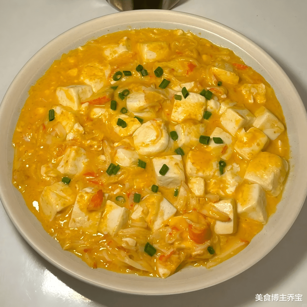 大家好,我是乔宝,日子不紧不慢,每天好好吃饭!今天我可得跟你们好好唠唠这道超美味的蟹黄豆腐!光听名字就感觉鲜香四溢,金黄的蟹黄搭配软嫩的豆腐,一口下去,口感丰富,味道浓郁,是下饭还是配面条,都堪称一绝。下面是蟹黄豆腐的制作方法:
