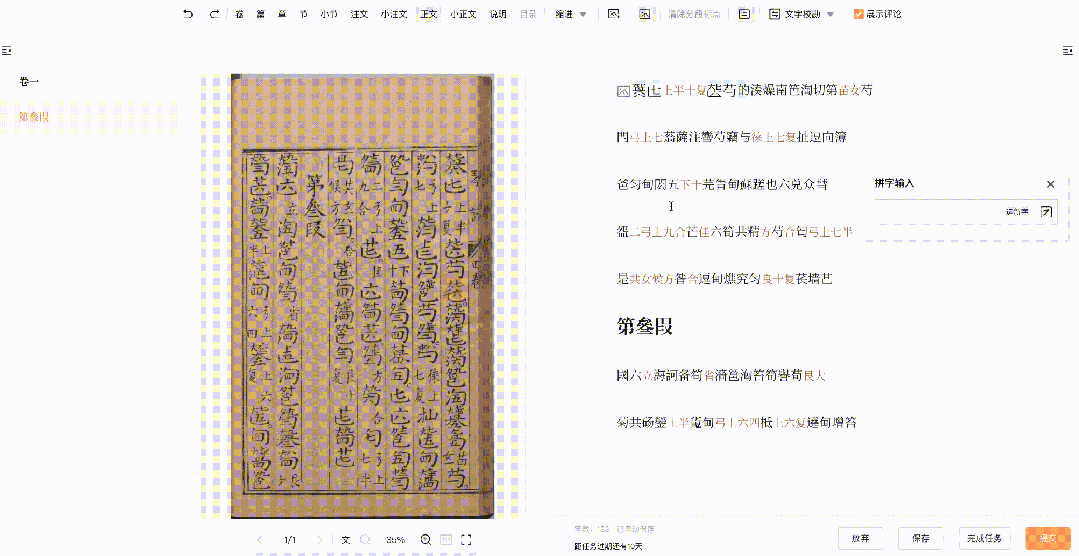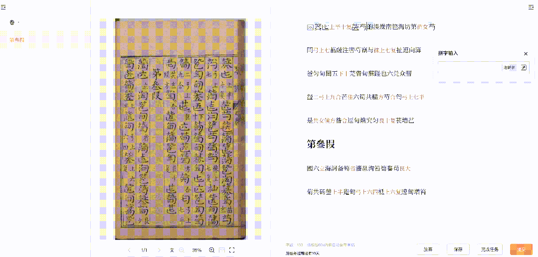 平台还建立了质量保障机制。所有校对结果会经过多种审核,包括机器审核、专业人员审核等,在提高整理质量的同时,也是人才培养的过程。