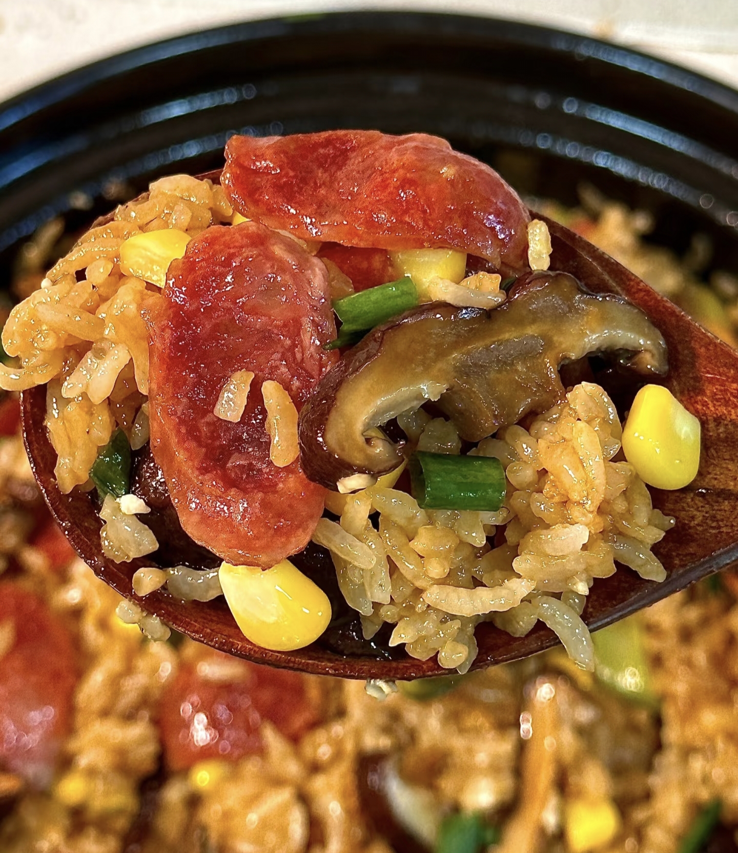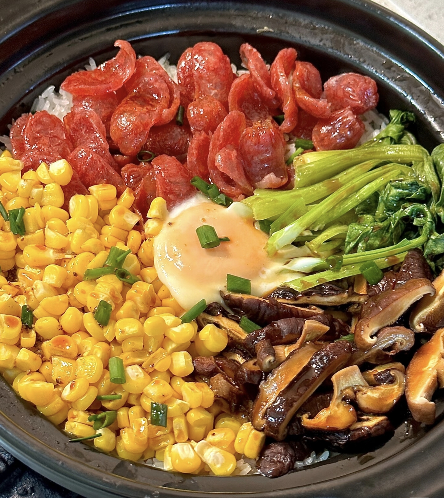 你们有没有那种一闻到味道就走不动道,吃上一口就幸福感爆棚的美食?对我而言,煲仔饭绝对算一个!尤其是腊肠、香菇、玉米、青菜