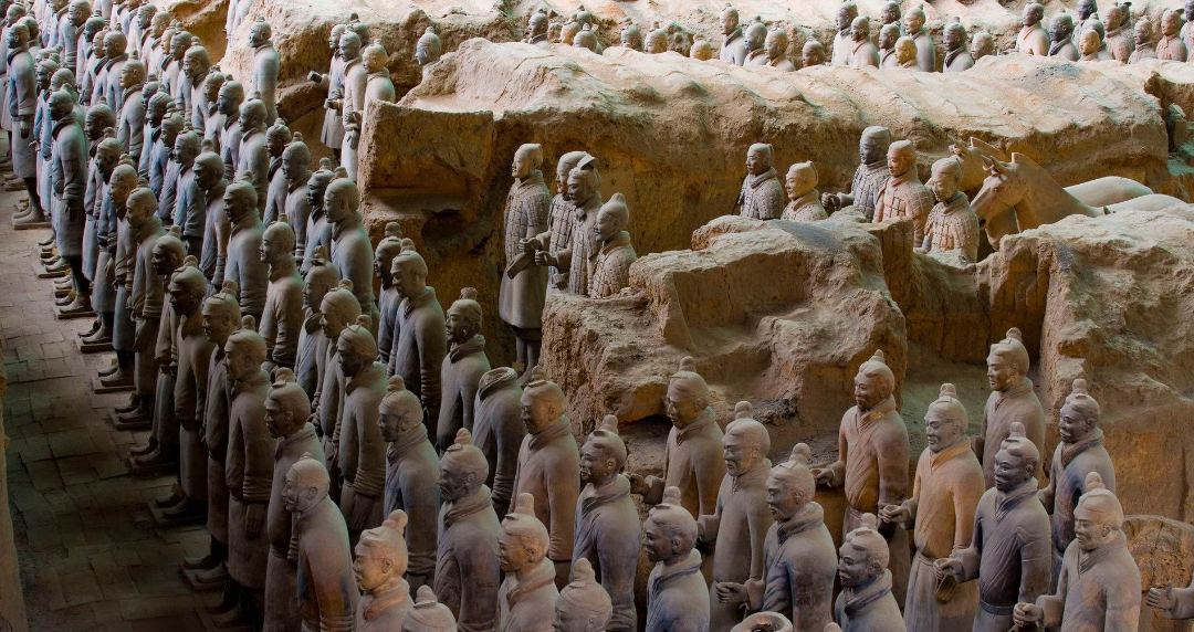 秦兵马俑的大名想必所有人都有耳闻,他是始皇帝嬴政的陪葬品之一,据当时考古工作者说,这些兵马俑一遇空气便迅速氧化褪色,泥俑本事是有上色的,想象一下秦朝的时候就已经存在的技术,结果现在都没有办法解决,导致现在秦始皇陵都没敢进行考古工作,而且这些兵马俑每一个的面容神态都各不相同,兵马俑包括了士兵和军吏,不同的兵种所手持的武器以及所穿戴的服饰,姿势也不尽相同,