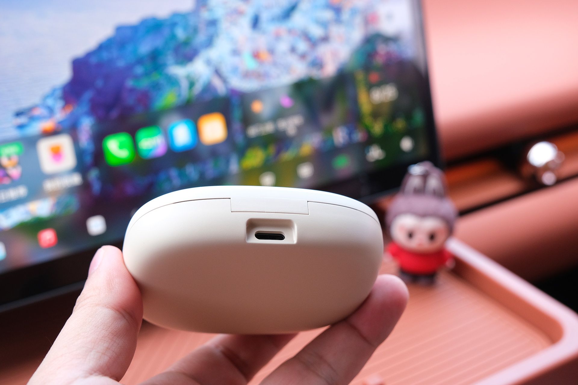 南卡OE Mix2耳机仓采用大圆角设计,握在手里很舒适,耳机采用耳挂式的一体式设计,提供卡其色和黑色两种时尚配色。此次入手的卡其色款,整体造型小巧轻便,单个耳机仅重7g。悬浮式耳挂设计搭配母婴级液态硅胶材质,触感柔软细腻,不仅降低了皮肤过敏风险,还带来了极佳的亲肤舒适感。即使长时间佩戴,耳朵也不会有明显的不适感。