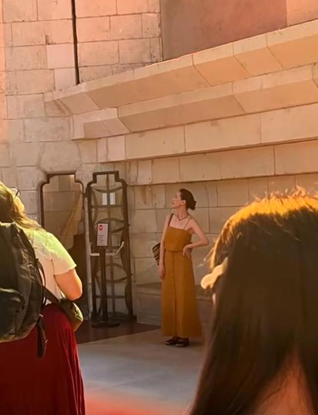 偶遇照中,现身巴塞罗那的高圆圆盘起一头长发,身着一袭橙黄色吊带连衣裙的她头肩比真好,官方身高才165cm的高圆圆好显高,路人镜头下看起来得有170。