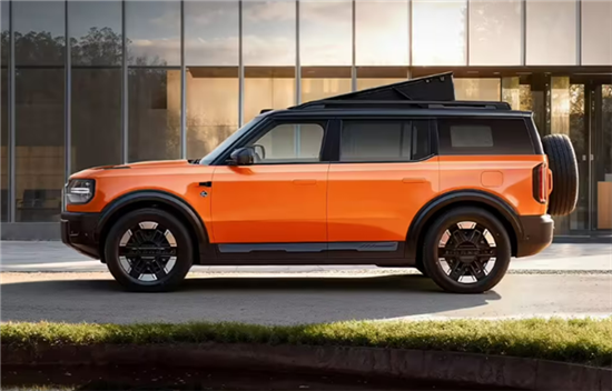 该车定位全地形露营SUV,整车设计风格与同胞福特Bronco Sport车型相似设,采用城市化方盒子设计,不过由于是新能源SUV,视觉效果更加内敛。