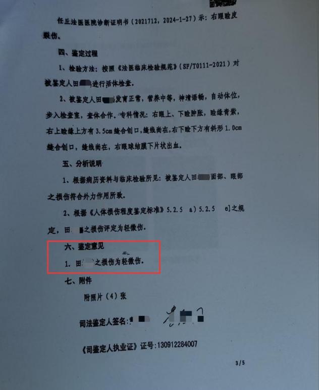 鉴定争议:初次鉴定存疑 投诉乱收费行为无果据田某家长称,其持有相关证据,指称 2023 年期间任丘法医鉴定中心存在乱收费行为,并曾就该问题多次向司法局、司法厅、司法部投诉,但截至目前未收到相关部门的回复。