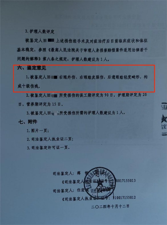 田某因遇袭眼部遗留外伤损伤且构成十级伤残,身心受创至今未愈。其与家长一心只求公道:希望相关部门彻查鉴定争议,追究违规鉴定责任;盼二审法院能支持合理赔偿诉求,弥补孩子身心伤害;北京市第一中级人民法院能支持合理诉讼,更渴望学校与教育局正面回应诉求,对施暴者作出应有处理,给孩子一个公平的就学环境,让这场风波能有公正结果。