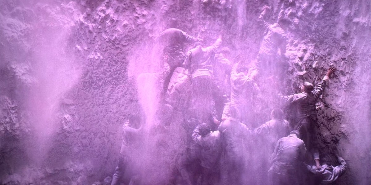 那一刻,白雪仿佛都被鲜血染红了,这种血雾弥漫的效果,也映射了他们的结局最后都是倒在血泊之中。