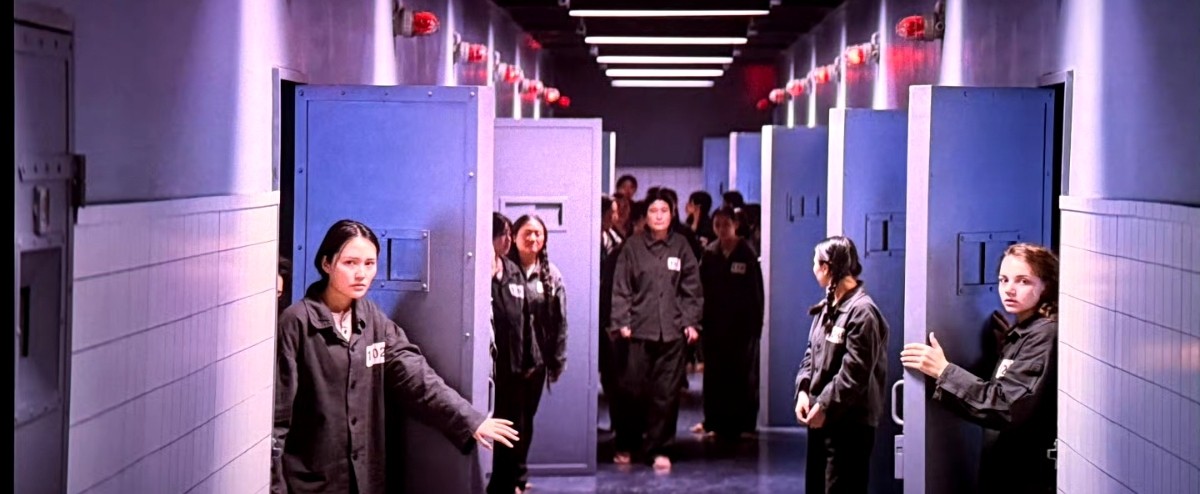 而在王永章带着大家越狱时,一扇接一扇的牢门打开,他们迷茫的走出来左顾右盼,拍摄视角形成了透视的纵深感,仿佛牢房没有尽头。