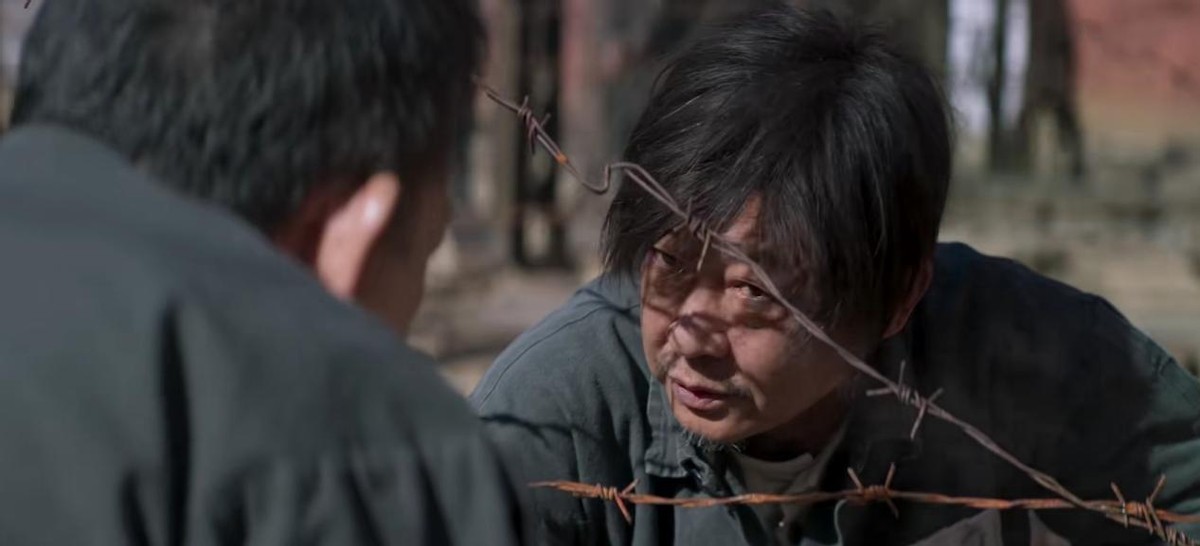 还有王永章在铁网下的镜头,站在观众的视角,看着密网之下的同胞无处可逃,这既说明他们被困住了,也让观众从他们仰望的眼神中看到绝望。