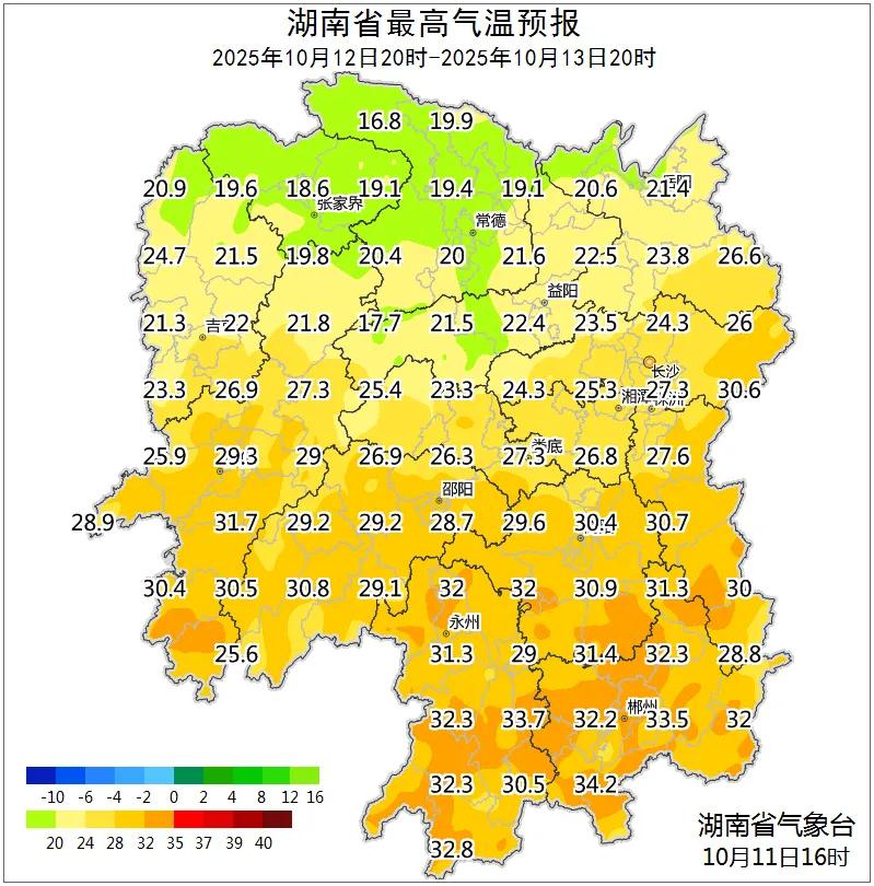 预计12日白天,湘中以南大部分地区有35℃以上高温,其中株洲中部、郴州北部、衡阳局地将达37℃以上,请做好防范。