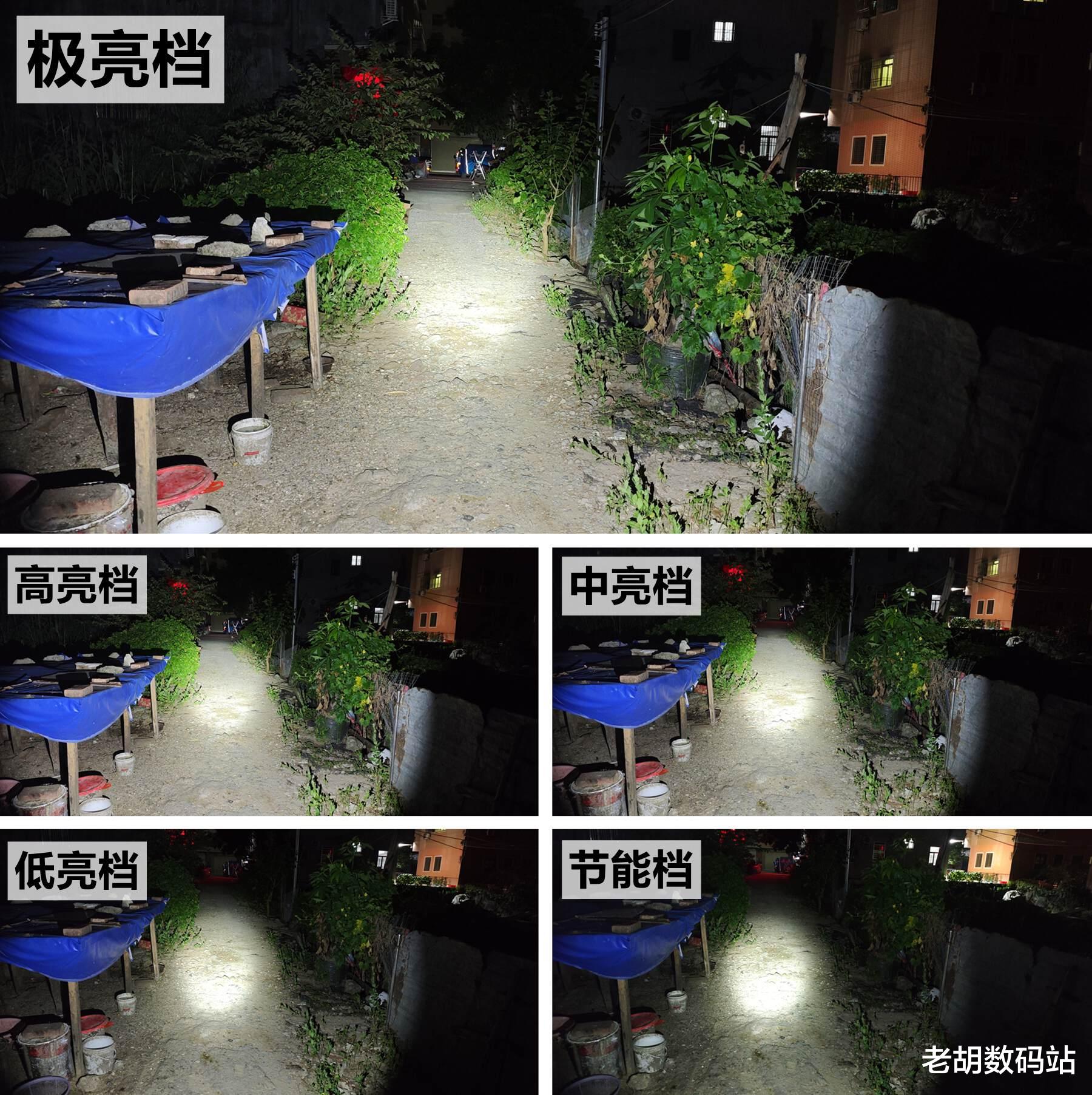 了解完Fenix PD36R ACE的外观设计和功能操作,接下来实测照明表现了,它有五档亮度可以选,从节能、低亮一直到高亮和极亮,每档之间的亮度区别都很明显。尤其是极亮档,一开真的超级亮,光斑中间非常集中、清晰,周围也照得均匀,不会有一圈暗影——晚上用起来视野特别清楚,走夜路或者找东西都安心多了。