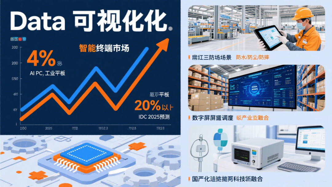 根据IDC数据,2025年中国智能终端市场出货量预计将保持约4%的增长,其中AIPC、工业平板和智能终端的出货量同比增长20%以上。同时,工控设备市场也在持续扩展,尤其是在制造业、智慧物流、医疗设备以及工业物联网领域的应用需求不断增加。这种增长不仅带动了硬件更新换代,也推动了智能终端与工控设备在性能、接口、操作系统和应用场景上的深度融合。