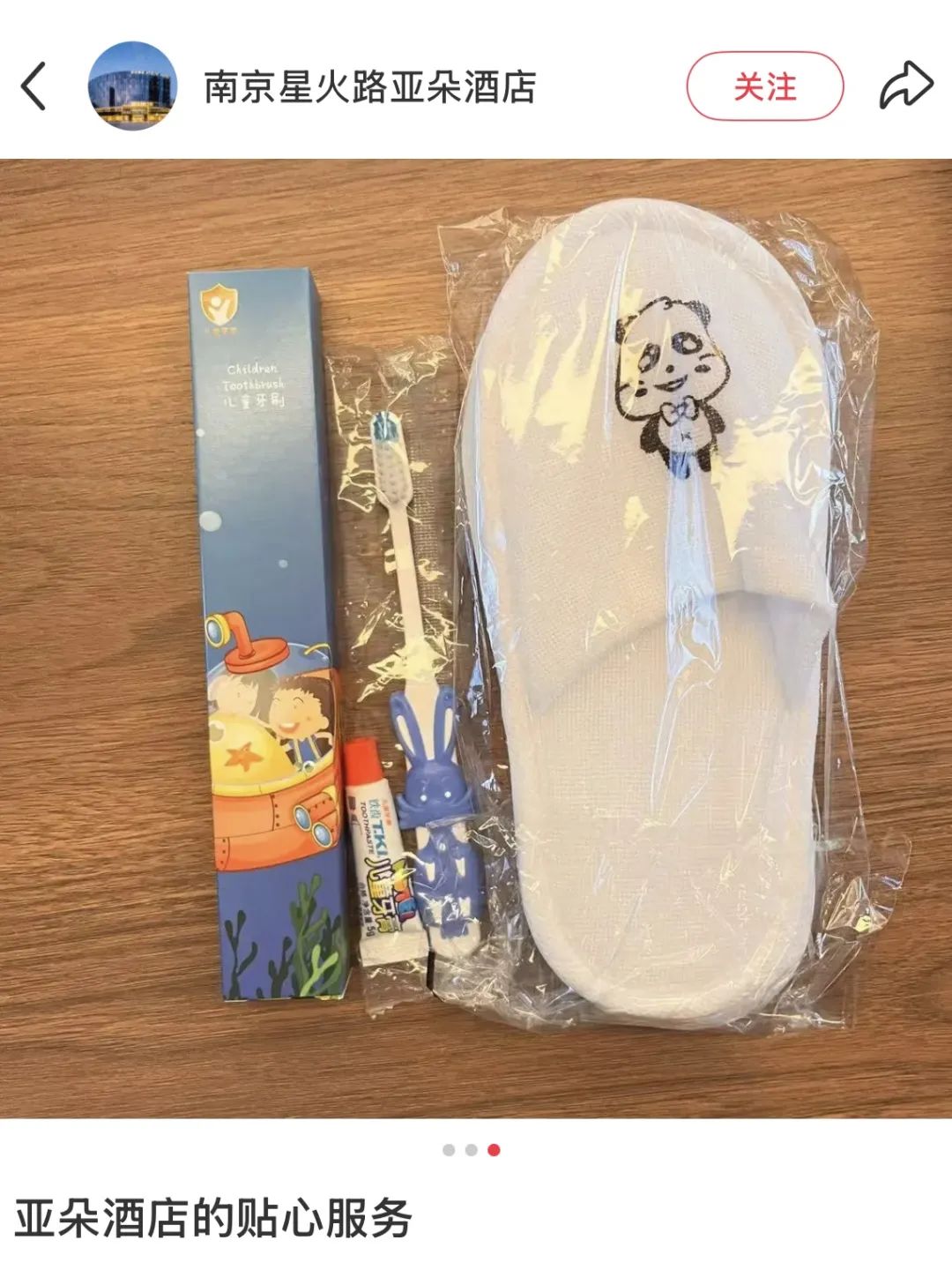 在亚朵也能安心带娃!不用自备牙刷,亚朵提供经300名儿童实测的奇趣牙刷!“主动刷牙率提升73%,让宝宝爱上刷牙!”还有儿童专属熊猫拖鞋,满满的舒适与童趣!还能带孩子到读书角阅读儿童读物,“从《好饿的毛毛虫》到《小王子》,亚朵收藏孩子与世界的1001次对话。”到了晚上还有晚安牛奶提供,呵护宝宝睡眠。
