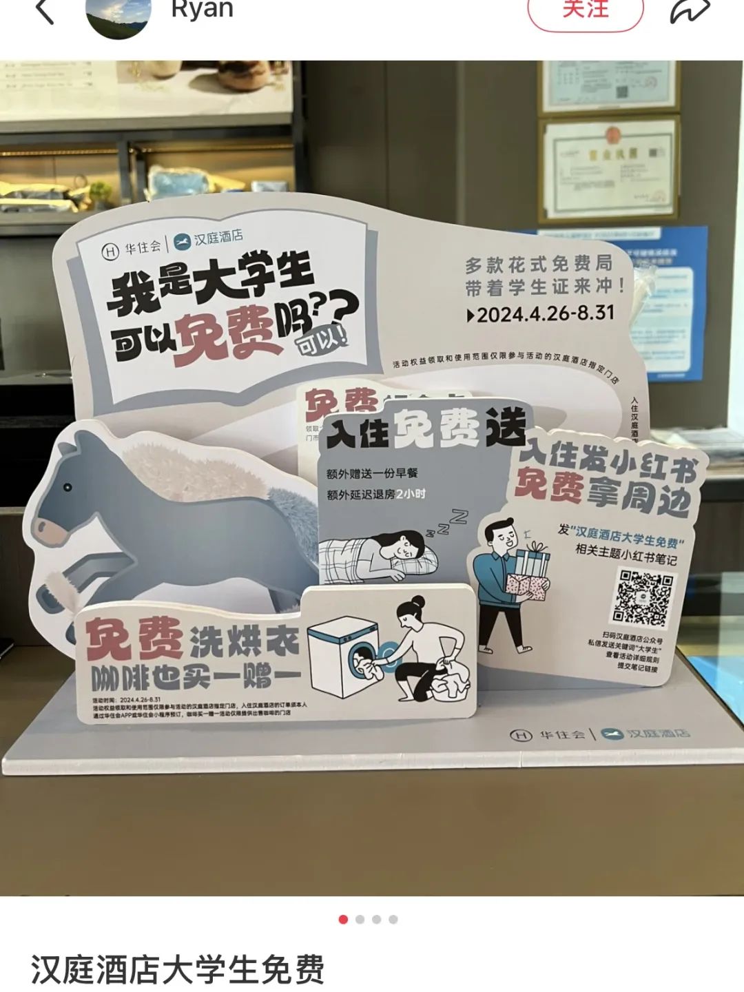 出行的大学生们有福了,入住汉庭享受多款花式免费局!大学生们需携带学生证,订单是本人,并发布“汉庭酒店大学生免费”相关的主题小红书笔记,即可享受额外赠送一份早餐、延时退房2小时、免费洗烘衣、咖啡买一送一的超值福利!快带着学生证“薅”!