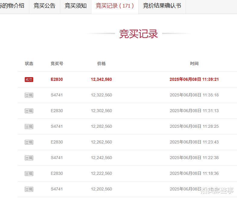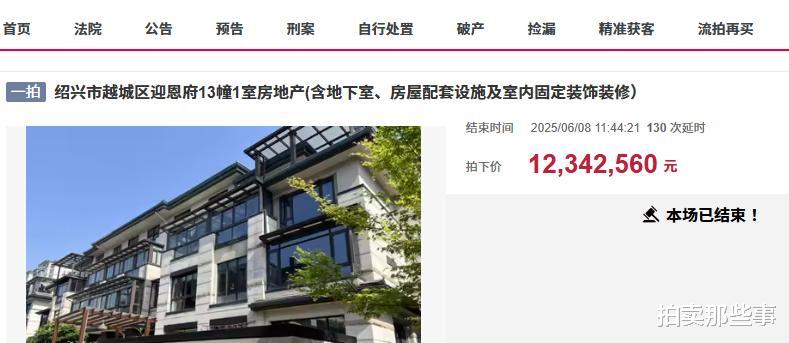 别墅拍卖的起拍价为858.256万元,不知道是不是价格低的原因,拍卖开始后,吸引了6个有钱人报名竞拍。竞争非常激烈,原本上午十点结束的拍卖,最后延时两个小时到中午十二点才结束,6个竞拍者一共出价了171次,最终别墅以1234.256万元成交,成交价比起拍价高出了376万元。不过成交价跟评估价比较接近,这栋别墅评估价是1226万元。