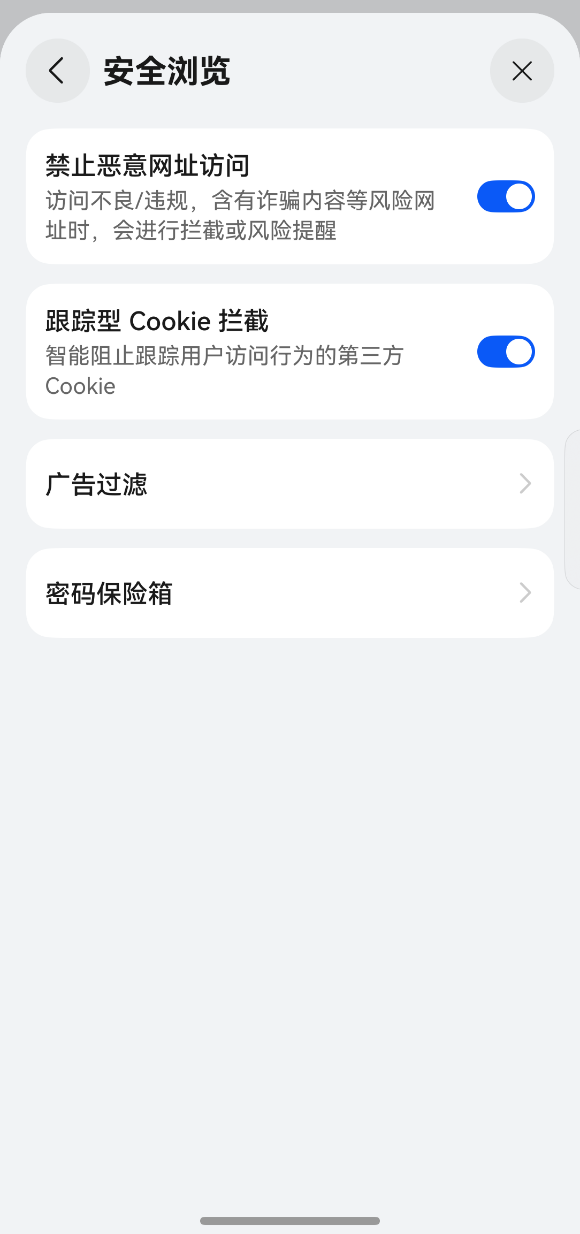 此外,华为浏览器还有恶意网址拦截、广告过滤、智能拦截App自动打开等功能,在为用户提供智慧化生活体验的同时,确保用户的隐私数据和财产安全得到更好的保护。