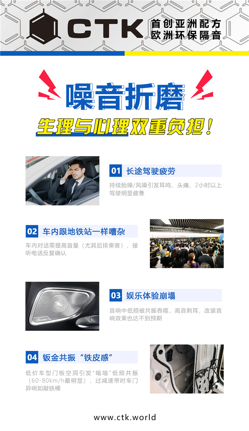 配置清单:品牌: CTK欧洲环保隔音门板:欧铂止震板