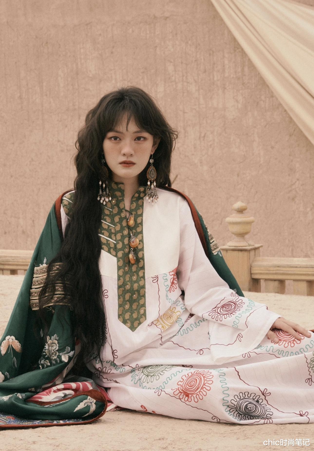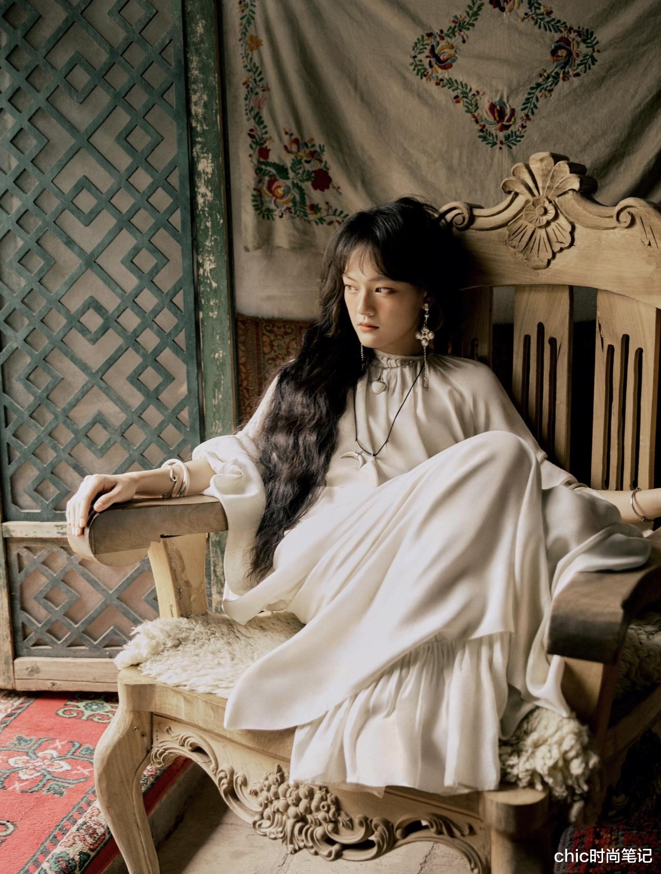 文淇的镜头语言太绝了!没有特意搭配,简单的白色雪纺连衣长裙配上民族风的耳环和项链就自带故事感。