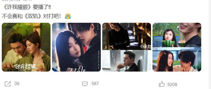 从故事简介上看,这部剧是一部甜宠剧,而甜宠剧也是虞书欣的舒适区,所以看到“许我耀眼和双轨”对打的消息,大部分网友是比较期待的,因为两部高热度的剧同期播出,随着剧情更新,会让两部剧的热度都变得更高。