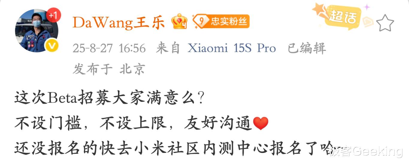对于其中的报名答题,只有在满足其它 3 项时才能进行,值得说明的是,这里答题题目的难度远远小于小米 BL 解锁的题目难度,可以说是无门槛报名。而且根据官方人员透露,此次 Beta 升级为大规模公测,不限制名额,对首批尝鲜用户很友好。