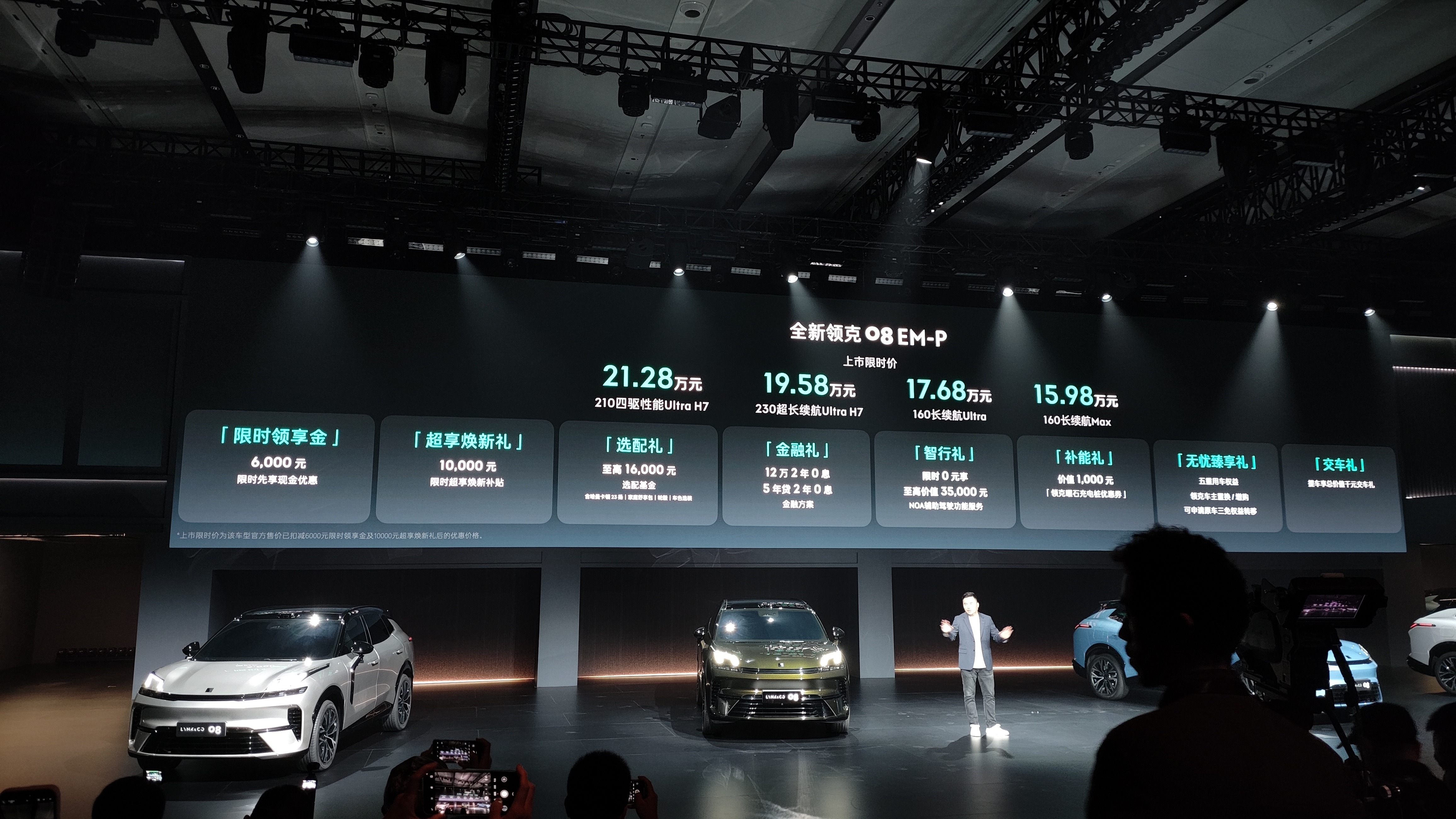 9月24日,新款领克08 EM-P上市。新车共推出4款车型,售价17.58-22.88万元。