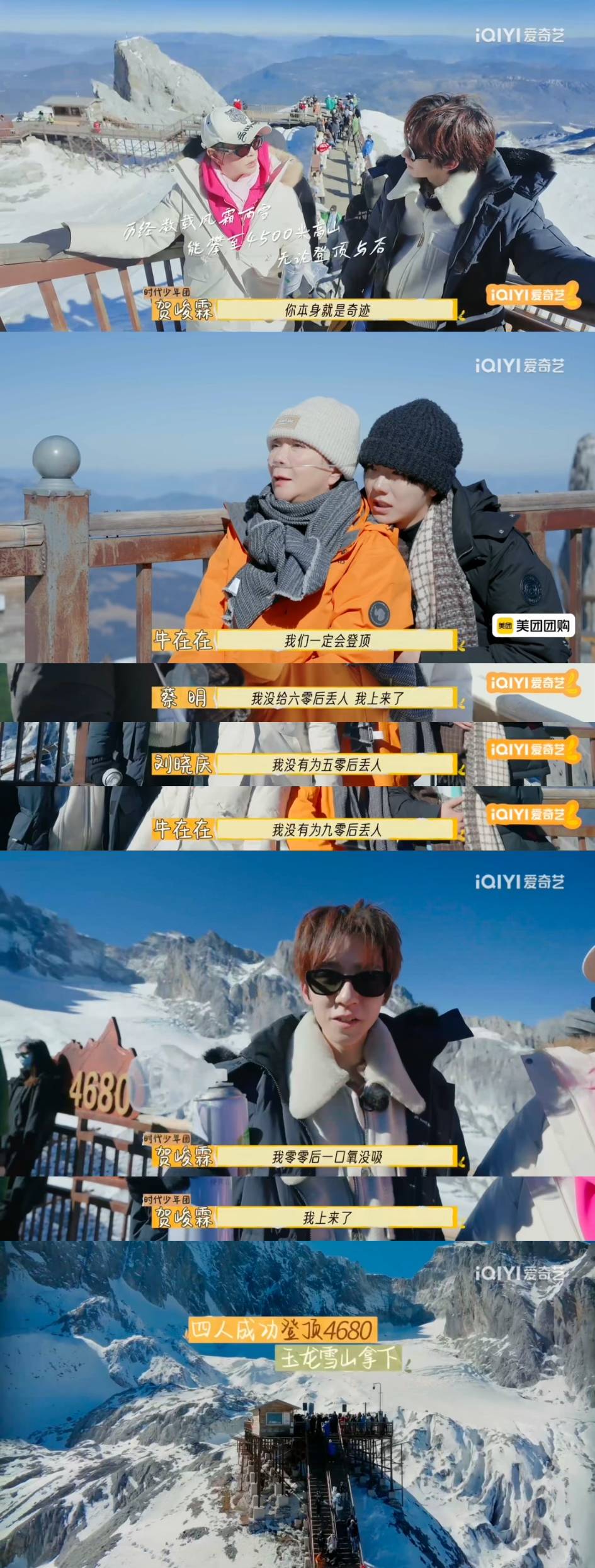 emmm...每个人的体力真的很不一样啊喂!74岁刘晓庆作为团队里年纪最长的姐姐,不仅没有在一开始表现出恐惧或不适,甚至在4056米部分姐姐选择下山等待后,她决定继续爬行、要“创造奇迹”登顶玉龙雪山!与此同时,同行登顶雪山之路的63岁的蔡明和贺峻霖、牛在在两个弟弟。一路上他们四人自觉组成“1姐+1弟”的帮扶组合,过程中他们相互鼓励、呼吸不上时快速补充吸氧、满眼都是对雪山山顶的渴望,经历了六十余载的风霜,如今攀登至4500米的高山,无论是否登顶、这份勇气又何尝不令人感动呢!令人激动的结局是,姐弟四人成功登顶,蔡明、刘晓庆大喊没有为50、60后丢脸。这一刻小编突然觉得,《一路繁花》你的70+、60+奶奶和我的奶奶好像不一样(bushi。