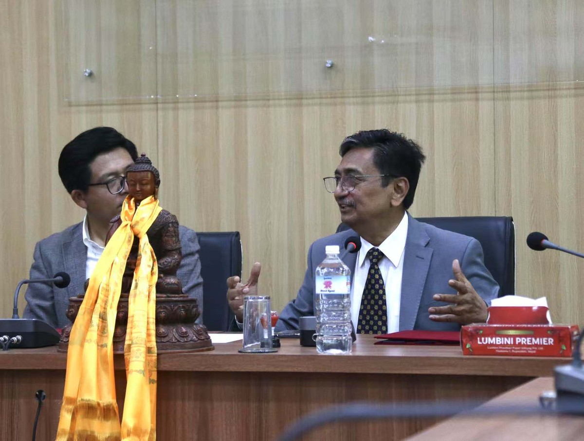 蓝毗尼佛教大学研究中心主任吉图·吉里博士(Dr Gitu Giri)在欢迎致辞中表示,该校长期致力于喜马拉雅地区的学术研究、文化传承与生态多样性保护。研究院的成立是整合区域资源、深化文明对话的关键举措,未来将聚焦佛教哲学传播、传统文化保护等领域,为区域发展贡献学术智慧。