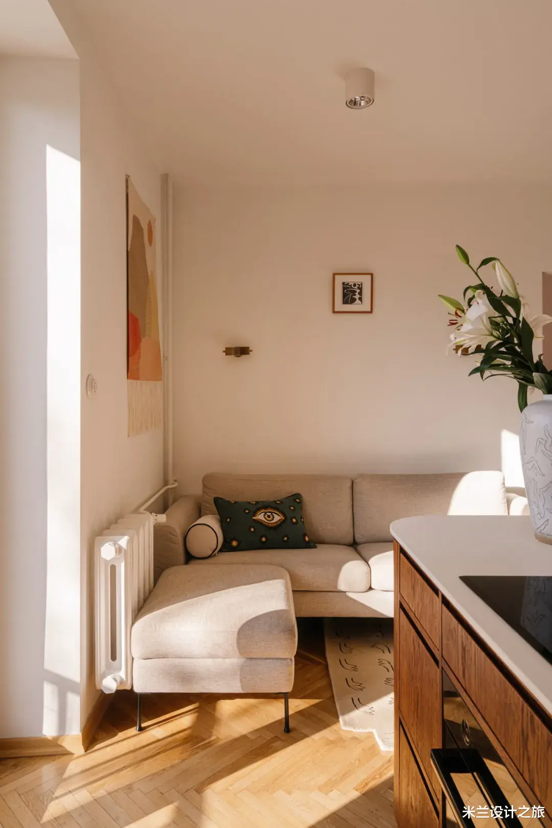 Romuald Gutt新作,47㎡小公寓,设计师必须在有限的空间内安排下三个房间、一个厨房和一间浴室。每厘米都得精打细