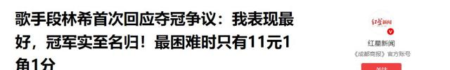 歌手段林希首次回应夺冠争议:我表现最好,冠军实至名归!最困难时只有11元1角1分——红星新闻