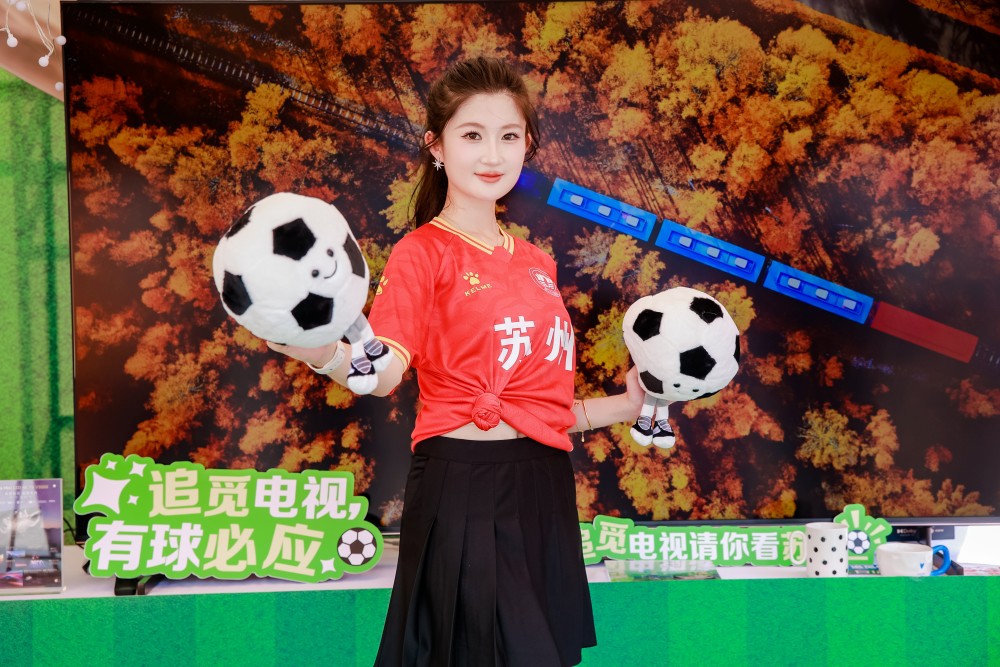 AI智能场景优化技术同样成为焦点。在播放“苏超”球赛时,电视自动增强动态清晰度;游戏互动区接入设备后即刻切换至5.3ms超低延迟模式,配合300Hz超高刷新率,实现指尖操控与画面响应的完美同步。现场搭建的“家庭游戏间”吸引超千人次参与,上百名新粉丝在沉浸式足球游戏中体验了绿茵场的速度与激情。