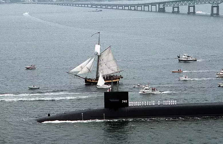 1988年1月5日,康涅狄格州格罗顿的通用动力下属公司电船公司获得建造该潜艇的合同;1988年9月15日,开始铺设龙骨;1993年7月17日下水;1994年7月9日正式服役。罗德岛号全长170.69米,全宽12.8米;吃水11.5米;水上排水量约16765吨,潜航排水量约18750吨;动力为1具S8G核反应堆,最高航速为20节以上;武器配备马克48鱼雷、24枚三叉戟Ⅱ型弹道导弹。
