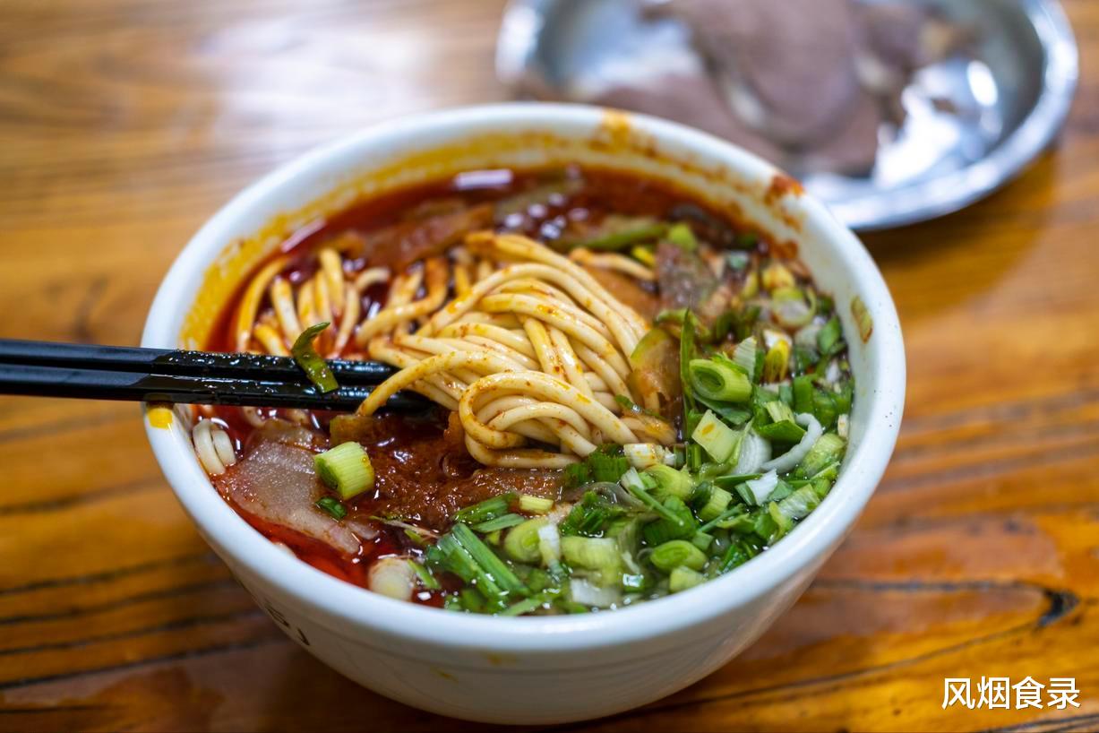 浇上熬足六小时的牛骨汤,撒把香菜蒜苗,红亮辣油浮在清汤上,唏嘛香!