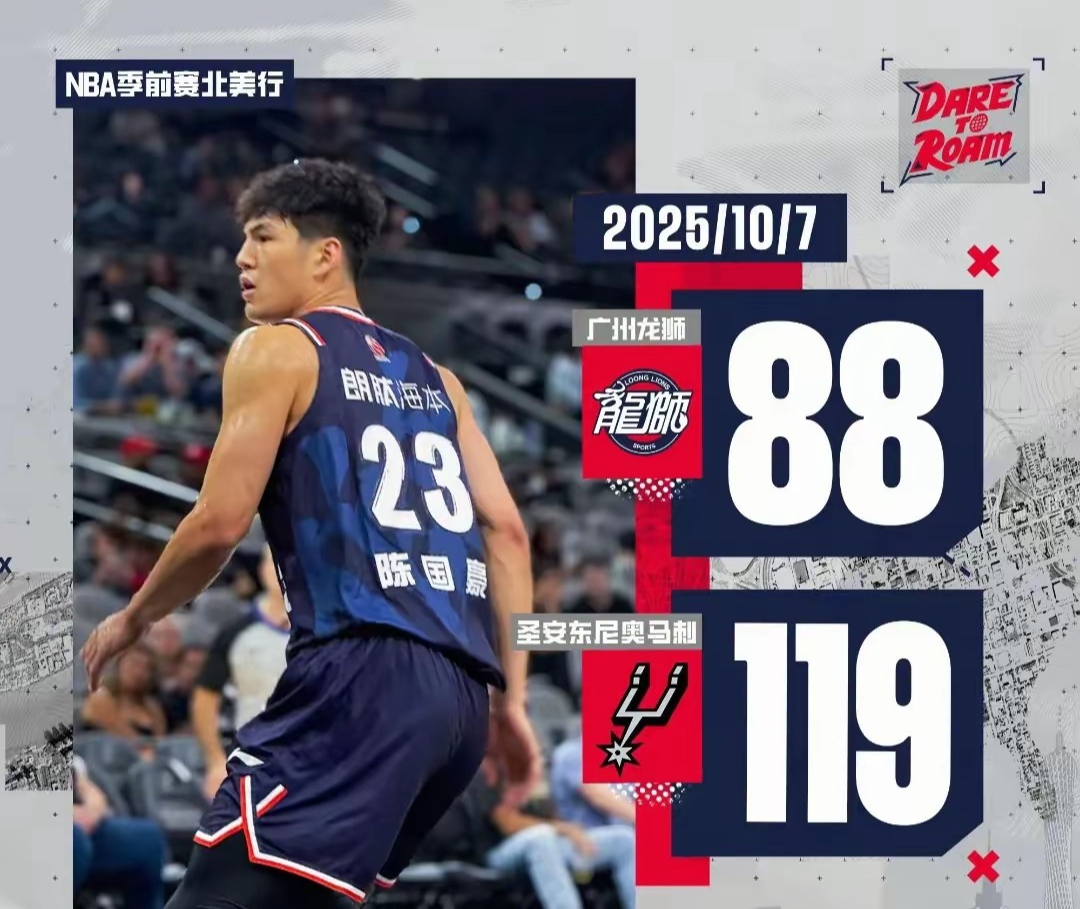 nba季前赛,由圣安东尼奥马刺队主场迎战广州龙狮,这场比赛的结果没有什么悬念,马刺队以119--88的大比分战胜广州龙狮。虽然31分落败,但广州龙有一位国内球员的表现非常出色,得到了众多专业人士和球迷的认可。