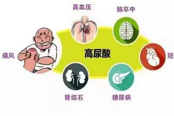 高尿酸血症(HUA)是一种代谢异常综合征,由嘌呤代谢紊乱和(或)尿酸排泄减少引起。当血液中尿酸超过饱和浓度时,会在关节、软组织和肾脏中沉积形成单钠尿酸盐结晶,导致痛风的发生。因此,高尿酸血症会增加痛风发作的风险,并与慢性肾病、心脑血管疾病、高脂血症、高血压、糖尿病、肥胖症等代谢性疾病相关。
