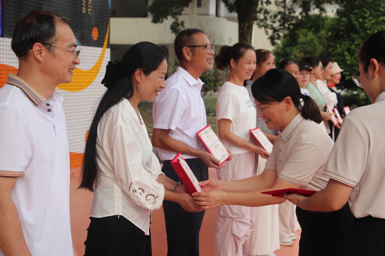 本次的核心环节,是“荣誉班长”的聘任与班级旗帜的传递。在听完“荣誉班长”铿锵有力的发言以及观看感人至深的“铭记历史,致敬英雄”短片后,学校郑重地为来自武义老年大学的爷爷奶奶们颁发了“荣誉班长”聘书。紧接着,由“荣誉班长”向一年级各班的“小班长”授予“银芽联盟”的班级旗帜。这不仅仅是一次职务的聘任和旗帜的传递,更象征着光荣传统与时代使命的交接。