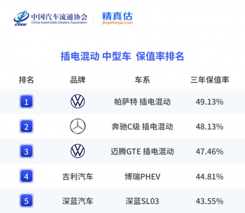 帕萨特插电混动凭借49.13%三年保值率占据插电混动中型车榜首,德系基因与先进新能源技术的融合,实现驾控质感与经济性的双赢。