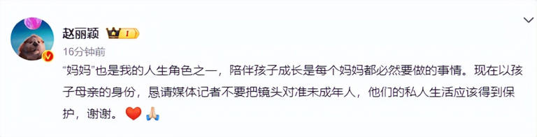 赵丽颖的发声本质上是对「儿童权利本位」的重申。无论父母身份如何,未成年人都应享有平等的隐私权。正如她在声明中所言:「陪伴孩子成长是每个妈妈都必然要做的事情」,这种朴素的人伦诉求,无关明星光环,只关乎最基本的人性尊严。