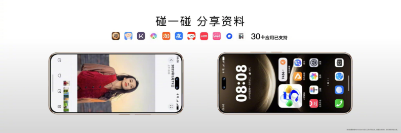 类似的还有碰一碰功能,和朋友看视频,只要手机轻轻一碰就能分享过去,不用再复制链接发聊天记录了。目前碰一碰已适配30多个App和场景,像WiFi共享、淘宝链接甚至游戏组队,都能一碰即传。鸿蒙 5为用户带来了更为统一的操作体验。