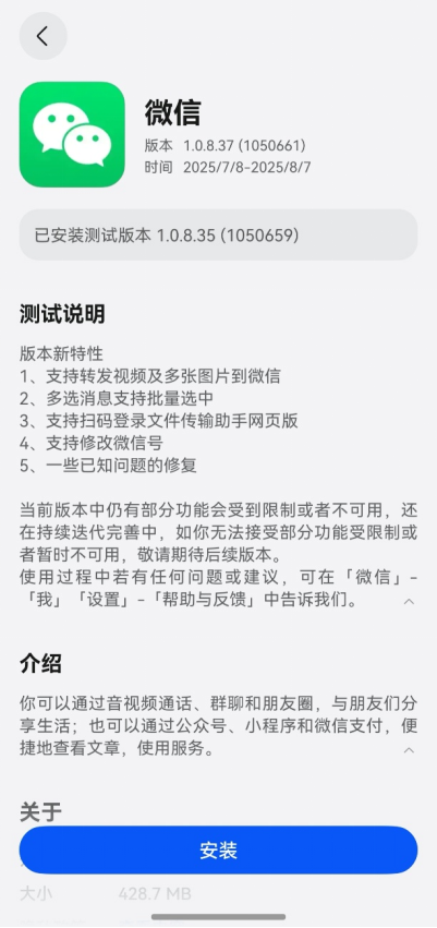 另外值得一提的是:鸿蒙版微信又双叒叕迎来大版本更新,最新版本已上线华为应用市场尝鲜区,此次升级新增:支持转发视频及多张图片到微信、多选消息支持批量选中、支持扫码登录文件传输助手网页版、支持修改微信号等重要功能。