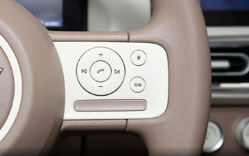 来到前排发现,整个内饰加入更多圆弧线条进行修饰,到处都是圆形的元素,看起来就很奶呼呼,再加上大面积焦糖色的配色,这种氛围正是女孩子喜欢的。全系标配7英寸液晶仪表盘,除入门级,其余车型均配备8英寸中控屏。内部集成部分车辆调节功能,用户可以通过手机APP远程控制多项功能。很多细节设计跟两门版大差不差,只是针对细节调整。车窗调节按键从原来的中央扶手处换到门板内侧,更符合人们的驾驶习惯。