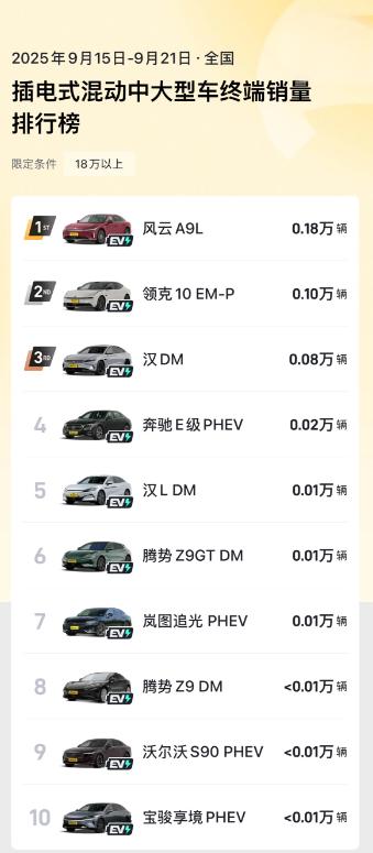 众所周知,虽然领克10 EM-P上市不久,但不仅受到外界广泛关注,还在在终端销量上展现出了强劲势头,于9月第三周插电式混动中大型车销量排行榜中位列第二,周销量突破1000辆。这一市场表现清晰地反映了消费者对其产品价值的高度认可。