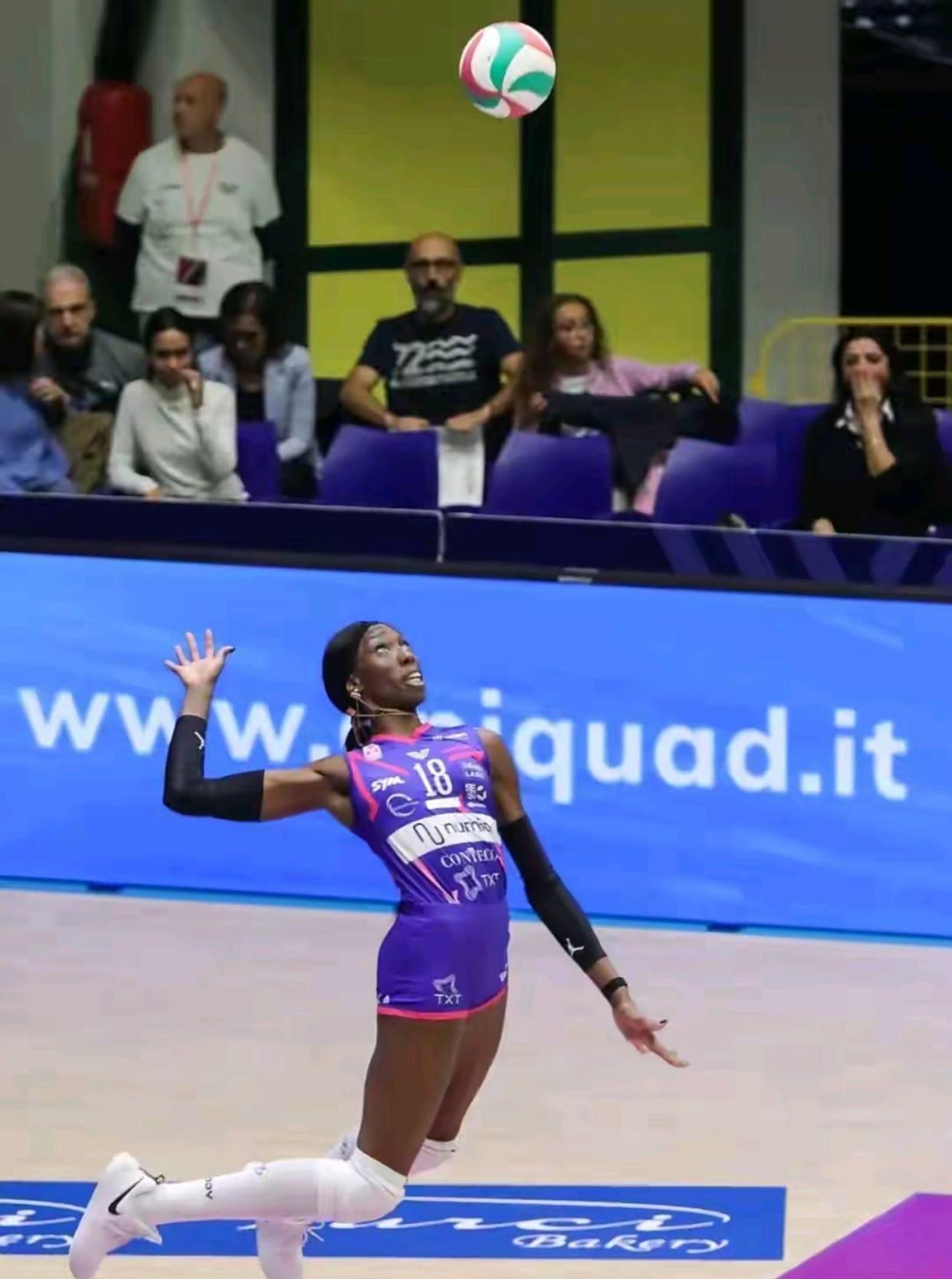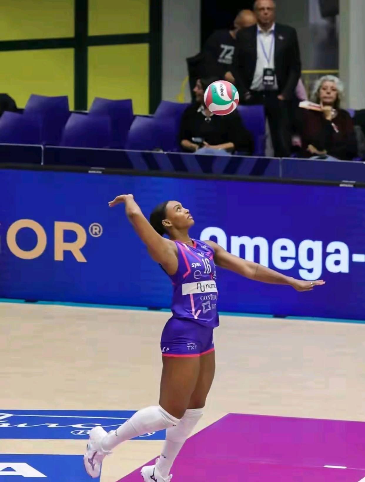 作为米兰女排的核心,艾格努从比赛伊始就展现出世界顶级攻手的统治力。首局伊始,她便以连续重扣打破僵局,帮助球队迅速建立领先优势。面对贝加莫的严密拦防,艾格努不仅凭借高度和力量强行突破,更在关键分上展现大心脏,首局局末阶段一记斜线扣杀锁定胜局,为球队奠定25-19的胜果。全场比赛,艾格努36扣22中,成功率高达61%,此外还贡献1拦2发,攻防两端毫无短板。她的暴力发球多次破坏对手一传,为米兰的防反创造机会,而进攻端的高效输出更是让贝加莫的防线难以招架。