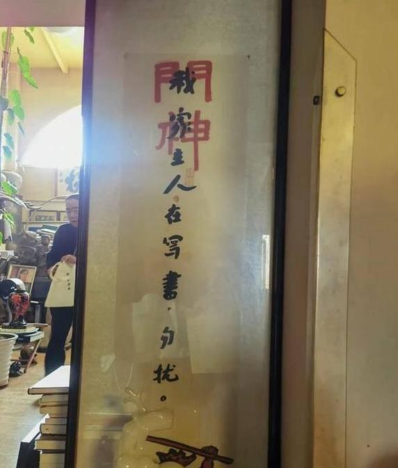 贾平凹老师已年满73岁,他的观念相对保守,书房的入口处摆放着门神,这不仅为他自身带来了平安,也保护了他那些珍藏的物品。除了“门神”这两个字之外,还写着“我主在编书,请勿打扰”几行字,内容还挺有趣的。原本以为这种说法只会出现在年轻人身上,没想到贾平凹老师也这么时尚。在过去两年里,贾平凹始终在创作。在这个书房中,他完成了《河山传》和《消息》两部作品,正是这个书房为他带来了如此多的幸运。
