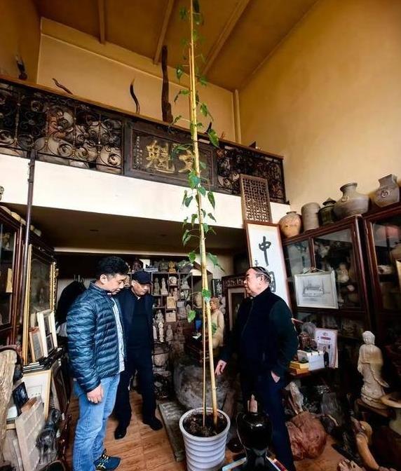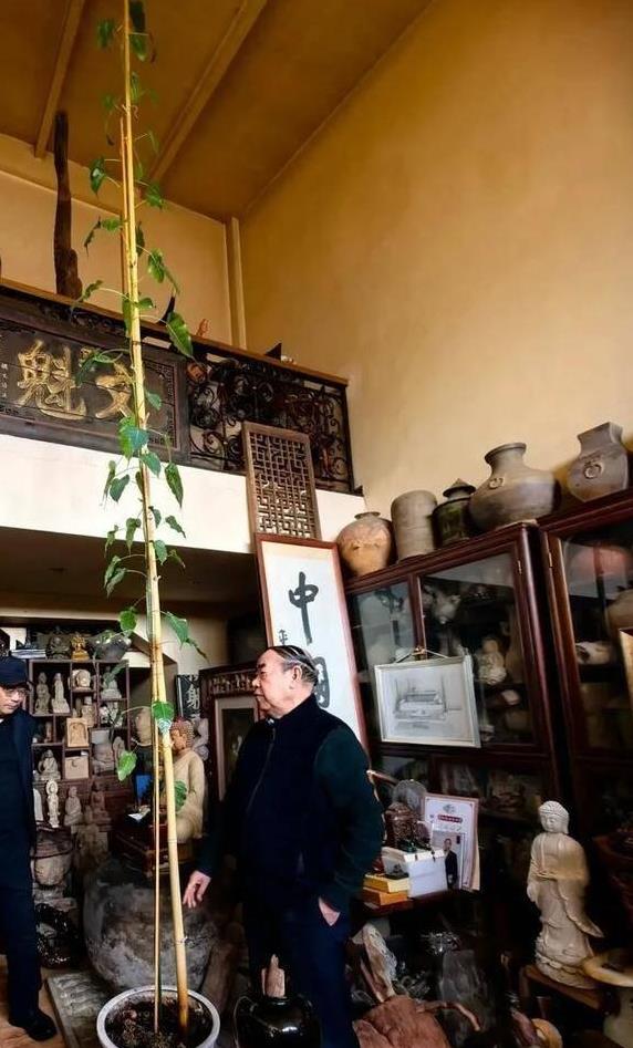 除了佛像,贾平凹的书房里还摆放着一棵菩提树。现在,这棵菩提树的高度已经和屋顶相当。仅仅经过一年,它就从一株小树苗迅速成长为如今的模样,生长状况实在惊人。