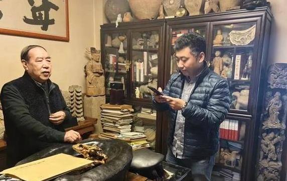 在我脑海中的书房景象,除了书架便是书本了,像他这种层次的作家,最多也就是挂上几幅字画。令我意外的是,贾平凹老师的书房却仿佛充满了博物馆的氛围。他家的书架上并未摆放很多书籍,而是塞满了各种佛像和陶俑,书籍的空间极为有限;在书架的顶部,还有许多陶罐,大小不一,整齐地排列着。